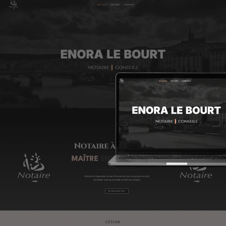 Nous avons eu le plaisir de concevoir le site vitrine de Maître Enora LE BOURT, notaire à Graveson, afin de mettre en valeur ses services et son étude notariale. Ce site épuré, et professionnel reflète son expertise et son professionnalisme, tout en offrant une navigation intuitive pour ses clients. Optimisé pour le référencement local, il permet à Maître LEBOURT d’accroître sa visibilité auprès des entreprises et particuliers recherchant un notaire fiable et efficace. Ce projet illustre notre capacité à créer des sites web sur mesure, adaptés aux besoins des entrepreneurs souhaitant développer leur activité en ligne.